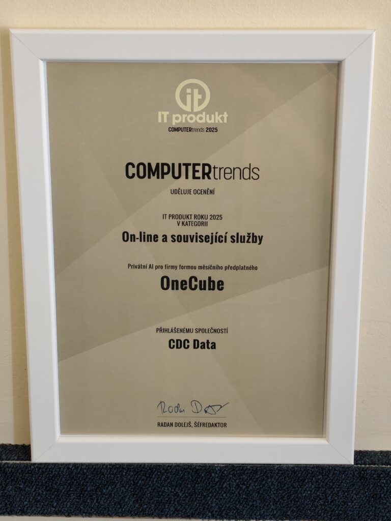 Zjistit víceNaše řešení privátní AI pro firmy – OneCube získalo ocenění IT produkt roku 2025, které uděluje redakce magazínu Computertrends.
